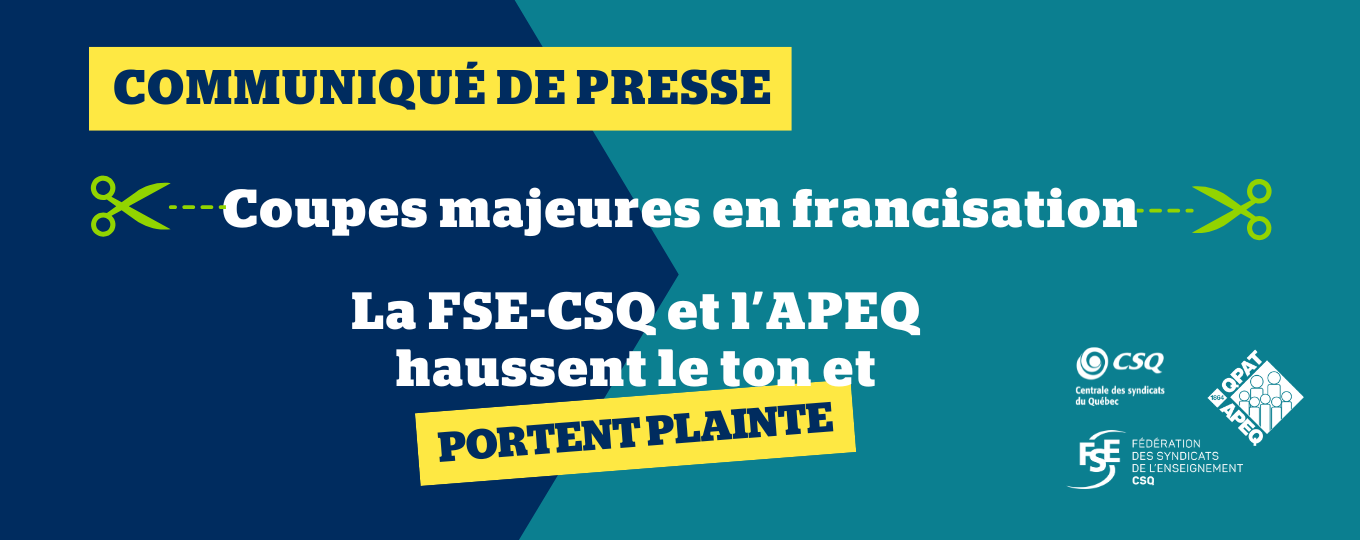 • Coupes majeures en francisation – La FSE-CSQ et l’APEQ haussent le ton et portent plainte